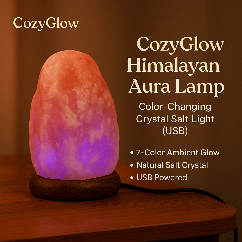 CozyGlow Himalayan Aura Lamp – Color-Changing Crystal Salt Light (USB)
