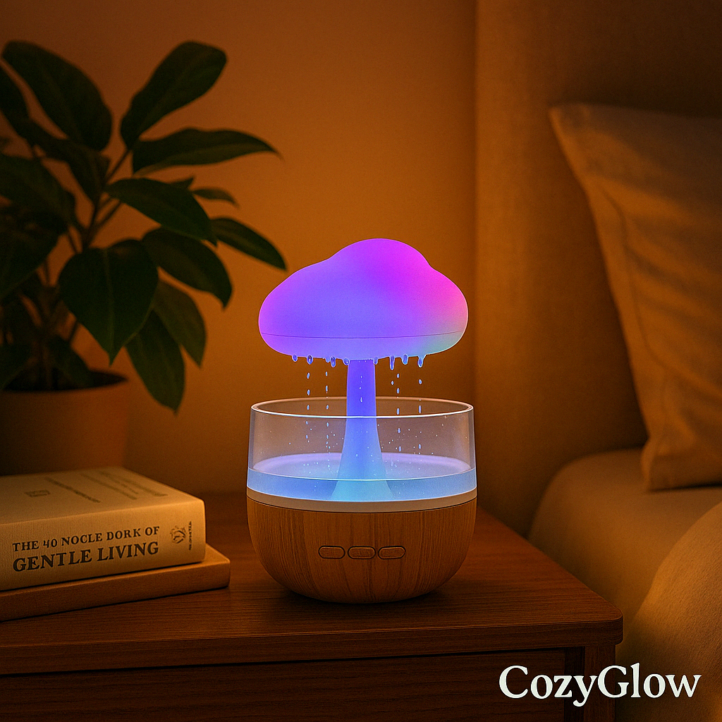 CozyGlow "Mushroom Cloud" No Mist Humidifier – Color-Changing Rain Diffuser